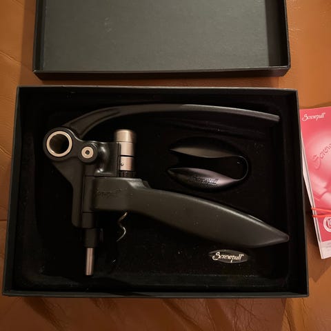 Dette er en Houdini Lever Corkscrew i original emballage, som er kendt for sin brugervenlighed og effektivitet. Den er designet til at åbne vinflasker hurtigt og problemfrit.