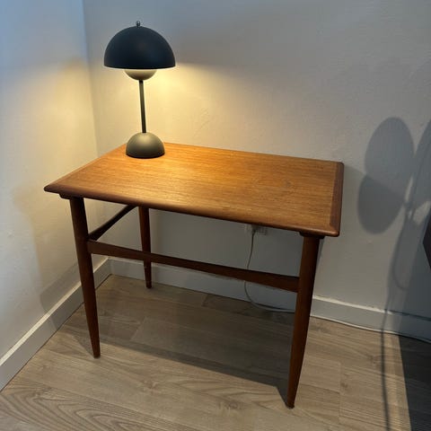 Fint træbord i massivt træ. Lakeret til blank overflade, men med konturer under af træet.