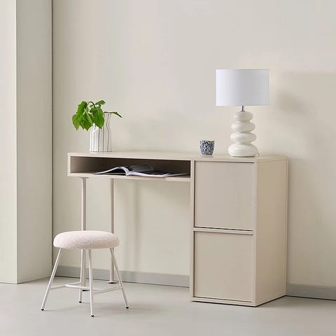 Skrivebord der kan klappes sammen. Med beslag og arm til en skærm. Praktisk og diskret løsning hvis man mangler plads til fx hjemme arbejdsplads.