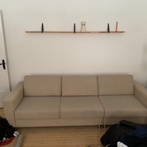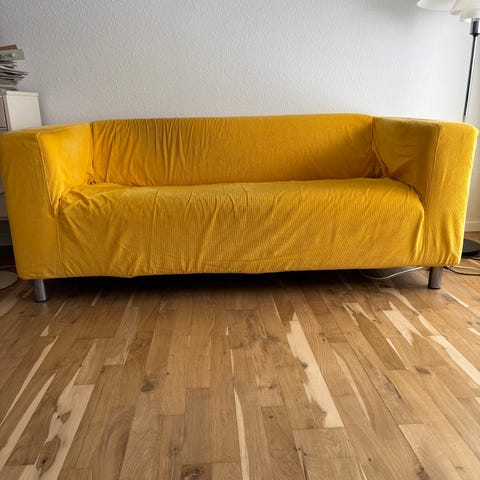 Sofa som man sidder godt i . Alt betræk kan tages af og vaskes og det kan også nemt udskiftes til en andet / nyt betræk. Der kan følge et brugt hvidt betræk med. Kan hentes senest d 20 / 1 .