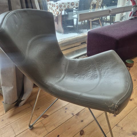 Lækker designerstol i bedste læder med drejesokkel. Kvalitetsstol med tilhørende læderpude.