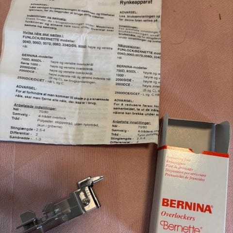 Overlockfod til overlocker. Med æske og vejledning. Passer til Bernina 700 D