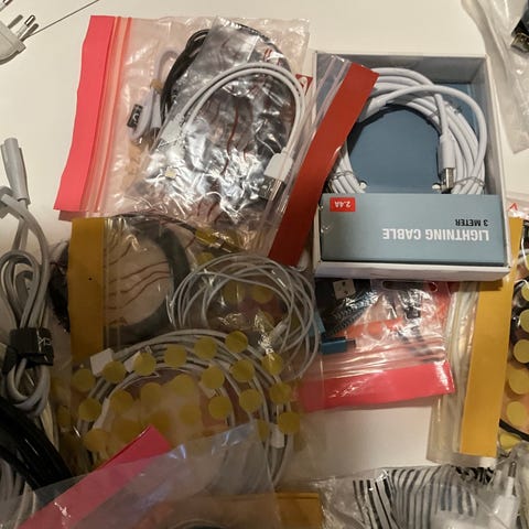 3x lightning kabler til apple produkter. Vi har kun usb c nu, så sælger ud. To usb c til lightning og en usb til lightning.