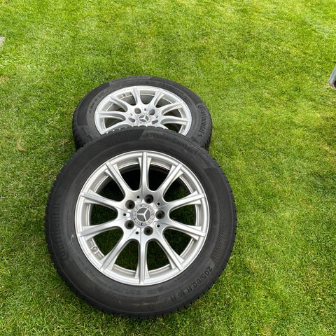 Originale fælge med slidte vinterdæk der alle bør skiftes. 2 af dem har dog 3mm mønster (225/55 R 17).