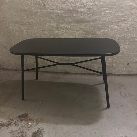 Sorte metalben og sortmalede trælammeller.