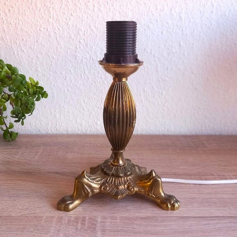 Særdeles skøn antik messing belagt bordlampe med smukkeste rav farvede (med let grønt skær) glas skærm - glas kuppel samt lang original snoet ledning med afbryder og stik i bakelit