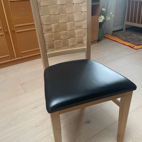 De trænger til en god gang sæbespåner og nogle af sæderne en skrue el 2,men selve læderet er fint og helt på alle stole prisen er samlet for alle 8☺️