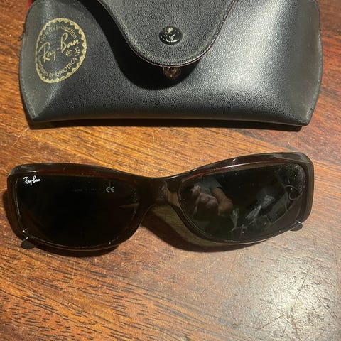Sælger disse Ray-Ban 4147 solbriller. Brugt et par gange, passer ikke på min kones hoved. Har et lille mærke i det ene glas. Se billede. Meget lille.