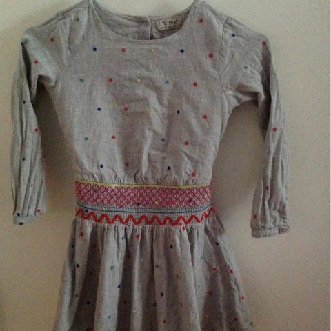 Kjole, Kjole med broderi, Zara, str. 140, Lang ærmet kjole med fin mønster går lige under knæet