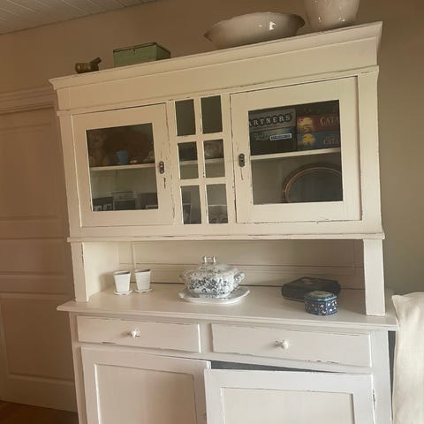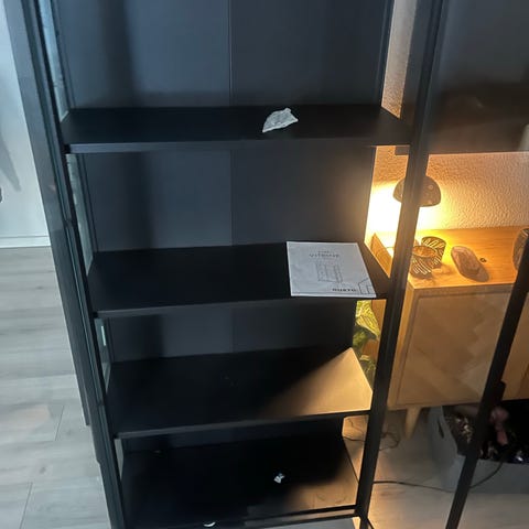 Fint vitrineskab sælges. Transport skade på den ene side, ses næsten ikke - se sidste billede. Har en ny side som medfølger (har aldrig fået den skiftet) men i denne er der også en transportskade. Det er ikke noget man lægger mærke til.