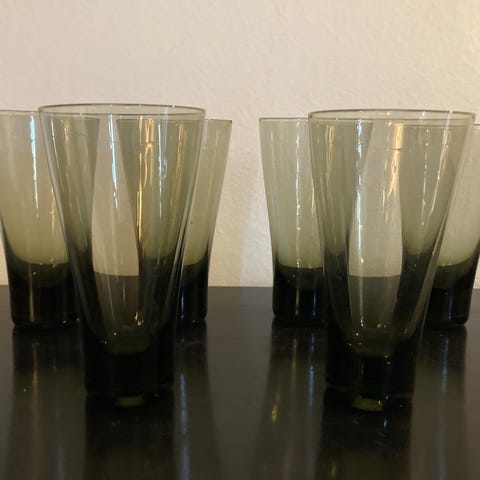Holmegaard høje drikkeglas i røgfarvet glas.