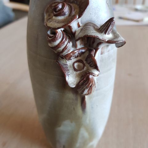 Vasen fremstår i pæn stand med naturlig glasurvariation, som giver hver vase sit eget unikke udtryk. Perfekt både med blomster eller som selvstændigt designobjekt.