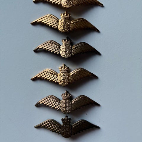 HJEMMEVÆRNS FLYVERE/PILOTMÆRKER. TO FORSKELLIGE PRIS ER 200 kr PR STK