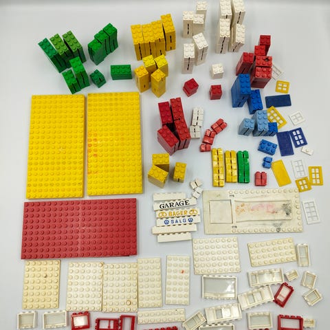 LEGO gammelt typisk op til tidlig 1970'erne men også meget tidligt se billederne det er 410 gram som gerne sendes. Se billederne der er 2 Shell klodser.