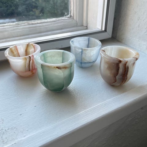 Håndmalede keramik æggebægre med blomstermotiv