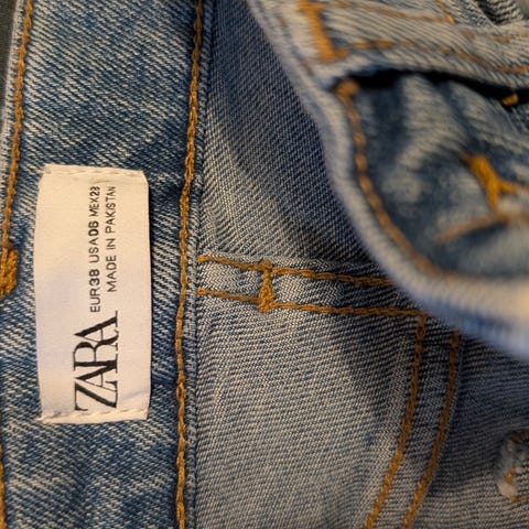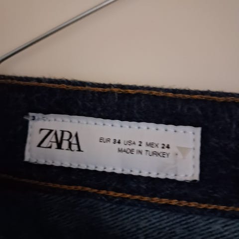 Zara Denim jeans i blå farve, størrelse 36 til kvinder med taljemål W28. Fremstillet i denim materiale.