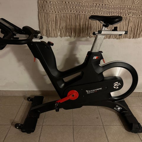 Tomahawk IC3 spinningcykel i sort farve. Cyklen har justerbart sæde og styr, samt et digitalt display. Designet til indendørs brug og egnet til konditionstræning.