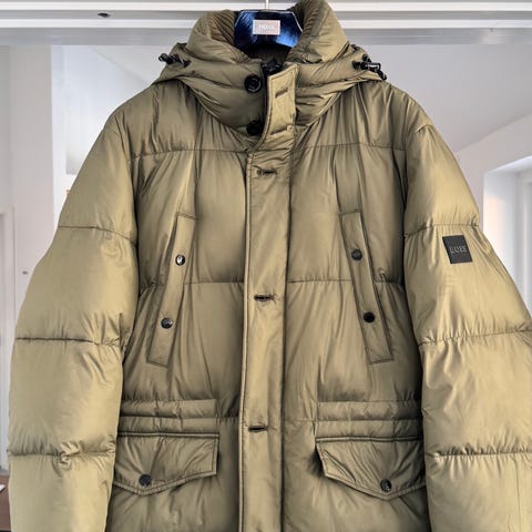 Dunfrakke fra Hugo Boss. Str. 36. Farven er mørk Beige.