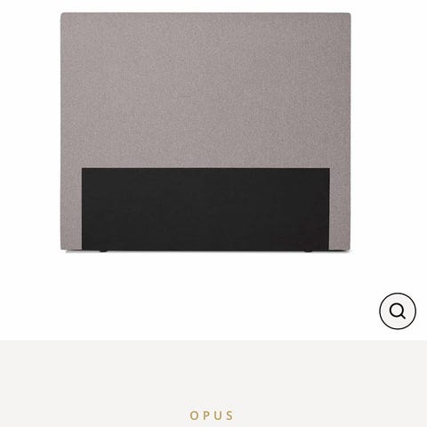 Flot og solid polstret sengegavl i mørkegrå velour med knapdetaljer.