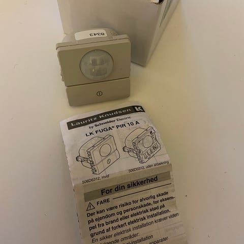 Produkt beskrivelse: Anvendelse: PIR'en er en bevægelsesmelder som anvendes til automatisk styring af indendørs belysning. PIRen er beregnet til montering i normal afbryderhøjde. Lyset tænder automatisk, når en person bevæger sig ind i PIR'ens synsfelt.
