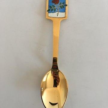 Fin forgyldt sterlingsølv ske med emaje rosemotiv fra
