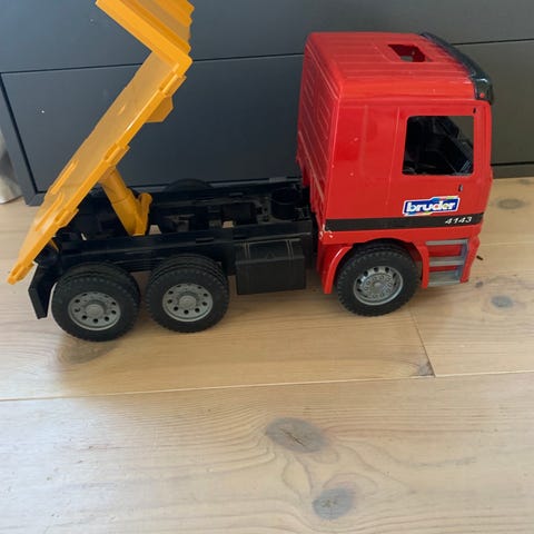 Den har en rød førerkabine og en gul lastkasse. Lastbilen er designet til leg og samling og kan være en del af en større Bruder samling. Den har seks hjul og er dekoreret med MAN logo og Bruder mærke.