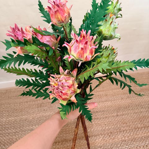 Hængende kunstig blomsterdekoration i flot stand. Som ny og ikke brugt. Ideel til vægdekoration og nem at vedligeholde.