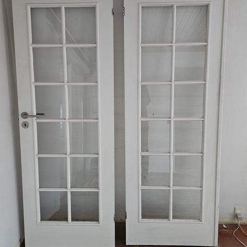 Dobbelt dør sælges . Kan hentes for 8000 kr ellers kom med et bud den står og fylder . Mål er 220 høj og 230 bred