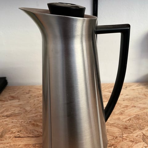 Stelton termokande fremstillet i rustfrit stål med sort låg og håndtag. Designet til at holde væsker varme eller kolde i længere tid. Velegnet til servering af kaffe, te eller andre drikkevarer.er som ny kun brugt få gange sender gerne