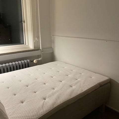 Vi sælger vores seng fra Ikea. Det er serien “Skårer” i fast form uden topmadras.