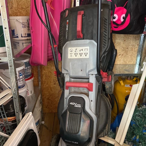 Greenworks plæneklipper med 40V batteridrift. Plæneklipperen er designet til batteridrevet brug, hvilket eliminerer behovet for ledning. Den har en grøn farve og er egnet til vedligeholdelse af græsplæner.