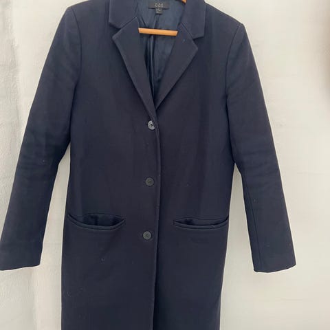 I 67 % uld, lysegrå med knapper og bindebånd.