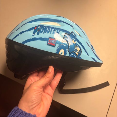 Lazer Coyote cykelhjelm til børn med punkthjul design og dinosaurprint i sort og gul. Hjelmen er udstyret med justerbar strop og spænde for sikker pasform. Velegnet til børn og unge med interesse for unikt og iøjnefaldende design. Aldrig brugt, da for lille. Størrelse 48-52 cm.