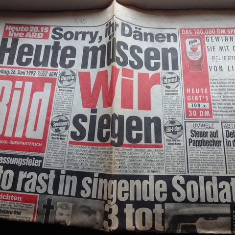 Bild Zeitung fra onsdag d. 24. juni 1992, hvor Flemming Povlsen citeres i opløftet tilstand