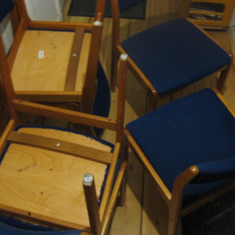 Jeg sælger de fire stole som ikke skal repareres til 1000 kr samlet.