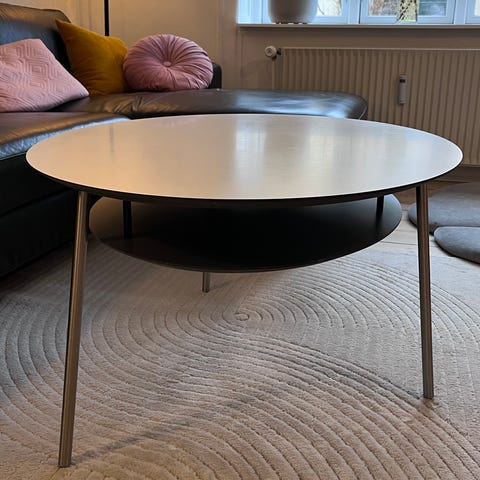 Andre borde, laminat, b: 54 l: 150 h: 35, Hvidt sofabord med underhylde. Har fingerlang og fingerbred afskrabning samt nogle mindre ,som er spartlet. Læg evt dug over. b 54L150 h35. 200 kr
