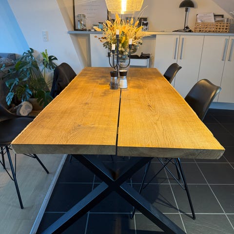 Robust planke bord i massiv egetræ med stål ben