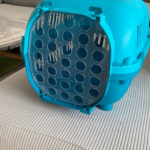 Solid transportboks (60 x 40 x 38) til katte og små hunde op til maksimalt 12 kg, med metalgitre der kan åbnes foran & ovenfra, åbning foroven: L 38,2 x 16,6 cm, kan fæstnes med sikkerhedsseler, inkl bæregreb.