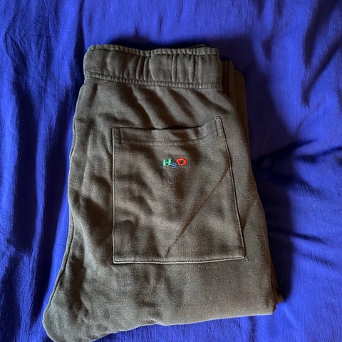 Navy jogging-bukser med 2 skrålommer forpå og lomme bagpå, Har elastik i taljen og underkanten af benene. Rigtig lækker kvalitet 90% cotton og 10/polyester
