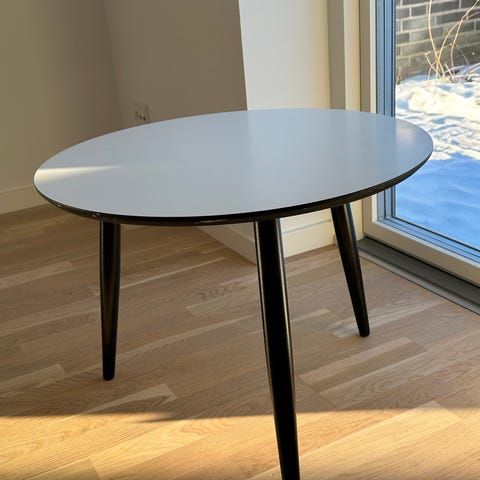 Lille bord i hvid. Benene kan skrues af. Har mindre skrammer men er ellers som ny