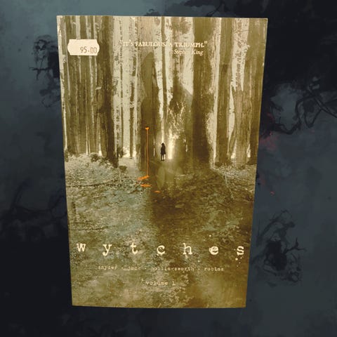 Wytches tegneserie med grafiske illustrationer og tekst. Historien indeholder elementer af horror og fantasy.
