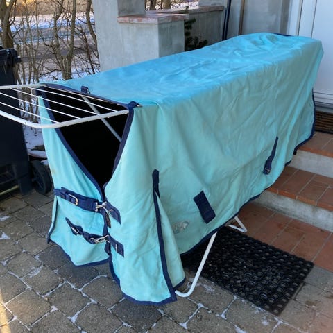 Pænt sort dækken, 200 gr, str 145 med nylonfor. Vasket og imprægneret. Sælges da jeg ikke har hest mere. ***Afhentes i Svinninge***. Se evt mine andre annoncer.