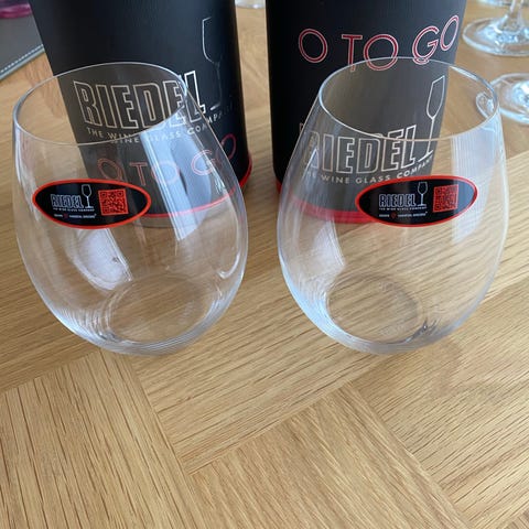 Sælger et sæt Riedel The O Wine Tumbler – Happy O (4 glas som på billederne). Stemless vinglas i klar krystal med farvet bund, så man nemt kan kende sit glas – super til både rødvin, hvidvin, rosé, drinks eller vand.