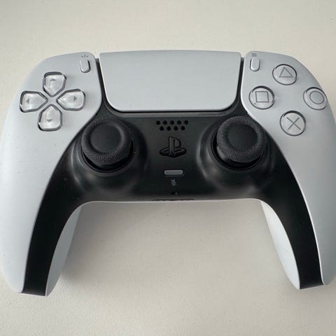 Defekt Sony DualSense Playstation 5 controller i hvid farve. Den højre har stikdrift/den styrer selv.