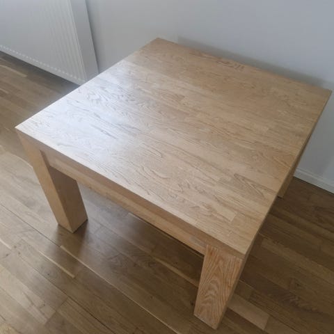 Nyt bord fra Hammel Furniture i ubehandlet massiv eg, dog med et par små skader. En lille skade lige midt på bordet og en på den ene kant - Se billeder. Nypris kr. 1.599