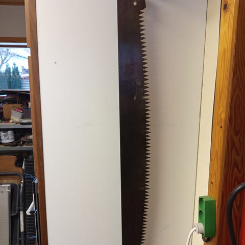 Skovsave i god stand, totallængde 122cm. bladlængde 103 cm.