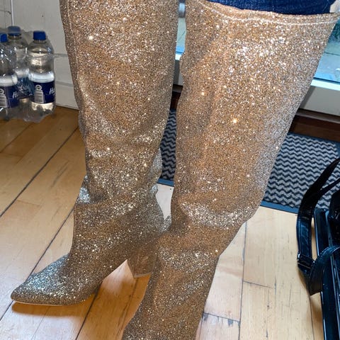 Så fine støvler i guld og alligator look købt i Buch Copenhagen. De har lynlås i den ene side og elastik i den anden side.