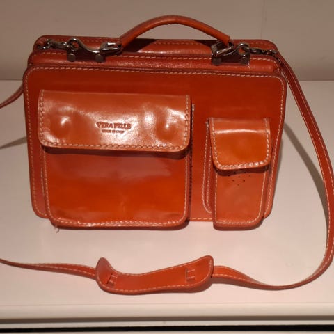 Lækker Italiensk lædertaske. 31 cm høj og 42 cm bred. Kan lynes op i begge sider for ekstra plads. Lang aftagelig ekstrastrop. Købt i læderbutik i Italien. Mærket Vera Pelle.