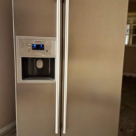 Siemens Side-by-Side køleskab i rustfrit stål. Modellen har to døre med separat køle- og fryserum. Køleskabet er udstyret med digital temperaturdisplay og is- og vandsdispenser. Designet til opbevaring af mad og drikkevarer med nem adgang til både køle- og fryserum.