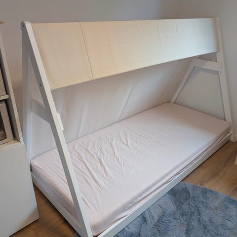 OBS Sælges UDEN madras, dyne, hovedpude, sengetøj og pyntepuder.
